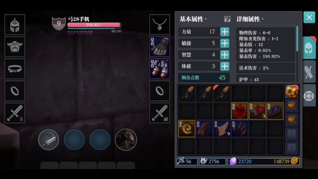 更新与回复日志: 1、有玩家询问魔盘摆放,在尾部增加了初始盘魔盘--2021年05月03日 ---------------------------------- 天赋:双刀,战斗法盘:斗技,魔力吸收,暴击潜力。 装备:光影幻影套,聚能手套,回避戒指。 60帧视频请前往B站观赏~ 反击对于持久战还是太弱。 对于高伤害加成的幻影来说,散件的选择并不多,能用的也就只有:洞察头,聚能手,新鞋子(10秒误