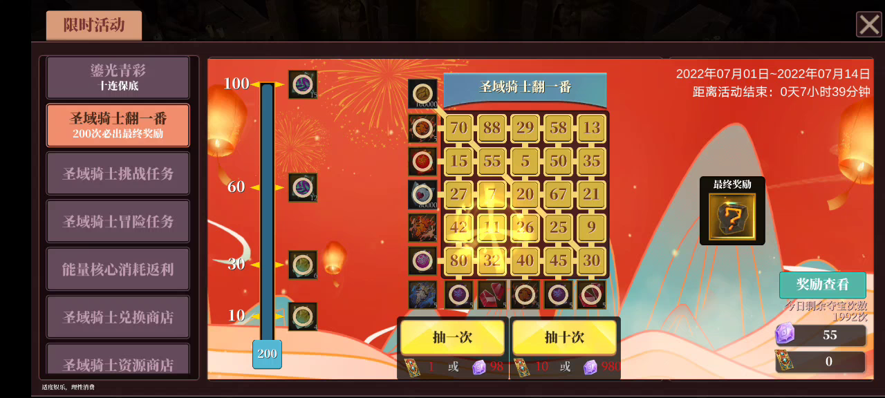 上个活动16000钻+50多张卷没抽到翅膀,这次活动110抽开始就剩11了,真踏马是捆着打。充了一百多肝了一下午挑战才弄成