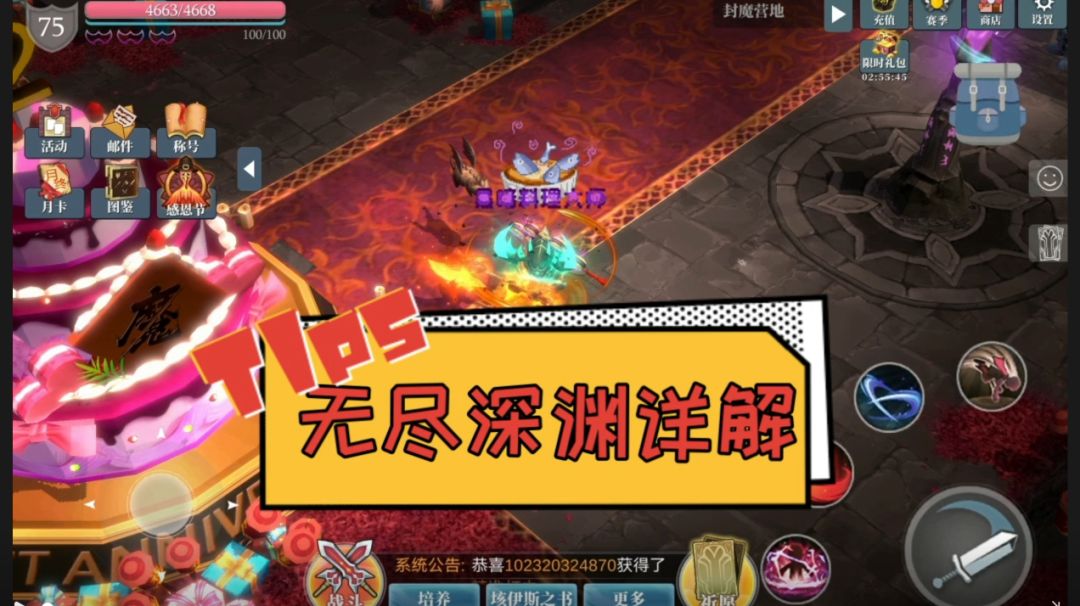 前言:本系列视频意在帮助新手玩家快速了解游戏的一些玩法,游戏属于养成类型的游戏,很多资源需要慢慢收集培养,新手玩家切莫过于着急。其他系统和boss打法攻略请看主页发布的其他视频(持续更新中) 本期重点:1.无尽深渊产出:深渊币,深渊金币,荣誉徽章,暗金装备,及相关使用方法。 2.速刷小技巧。 3.记得每周所有武器打榜获取大量奖励。