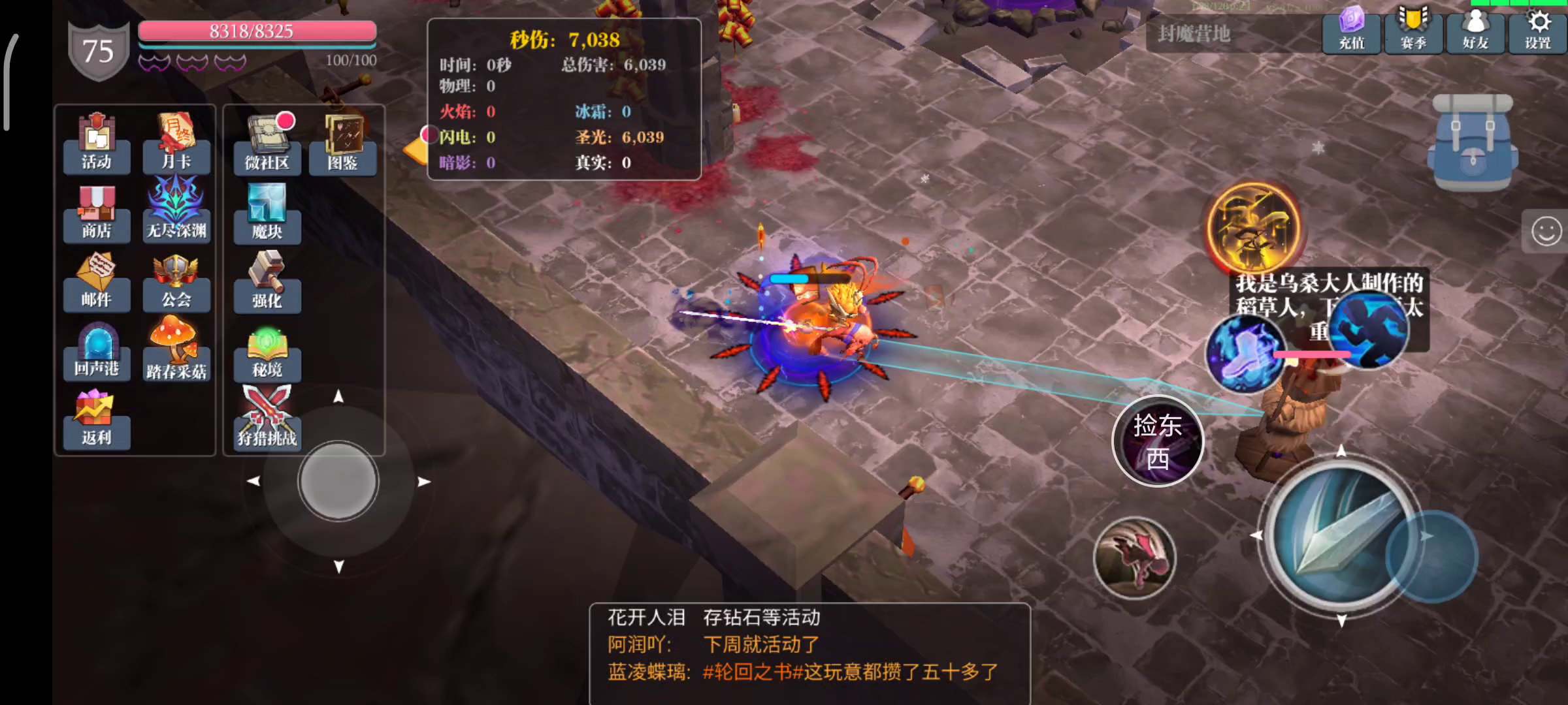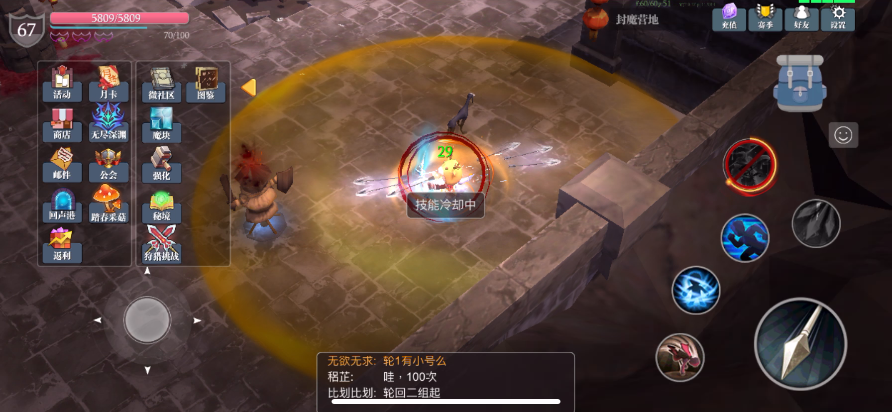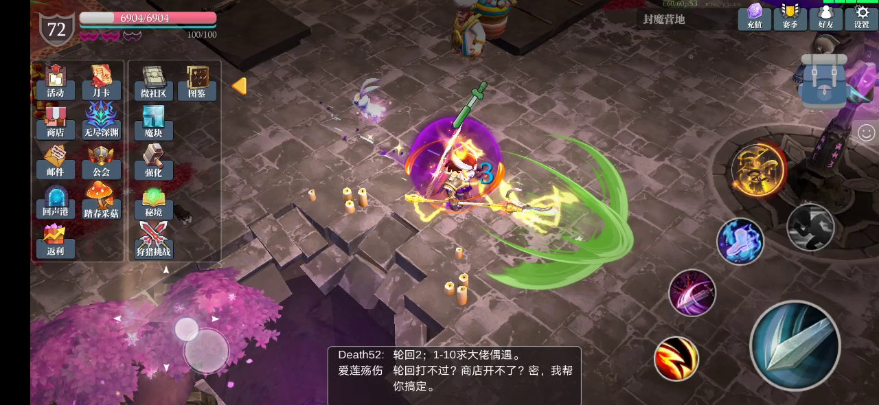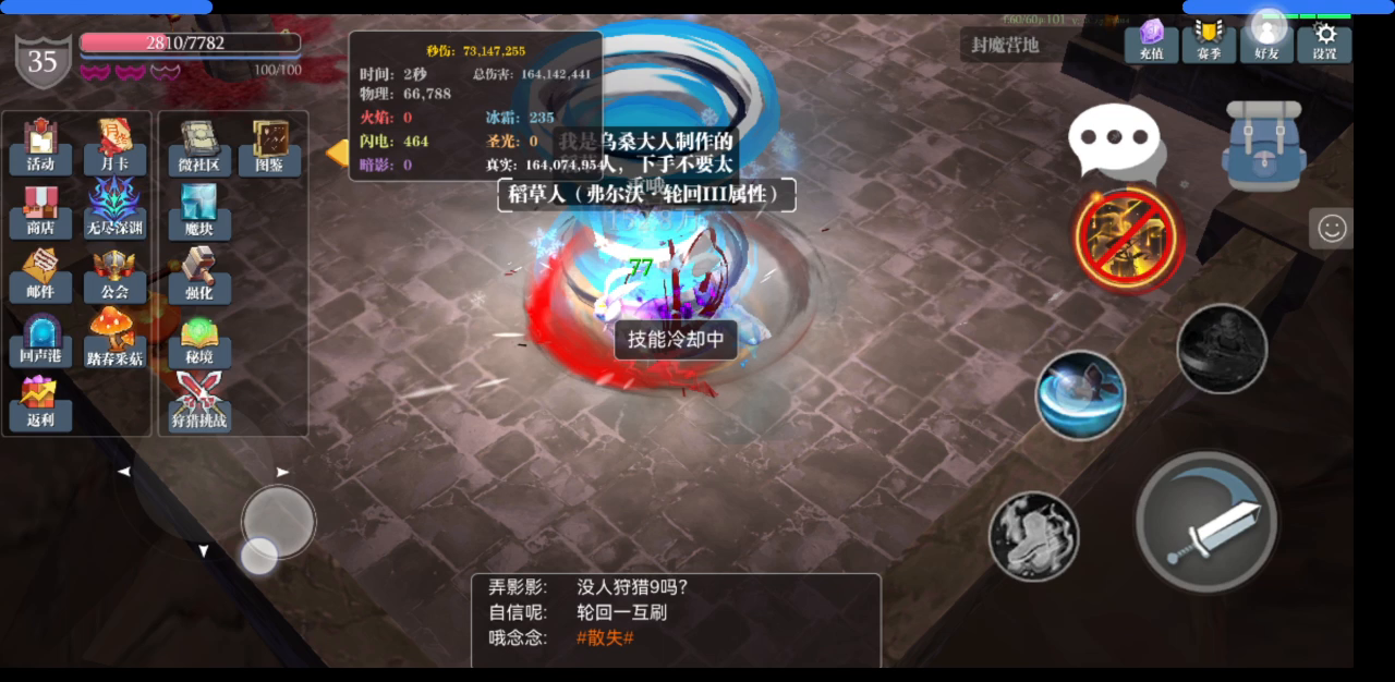 虚无读秒时间到了无敌2秒,卡时间过无尽不掉血玩法。符文带移动攻击,轻轻松松冲深渊。可以利用离殇戒指掉血数字卡虚无时间,掉一滴血也能触发虚无读秒仔细看头上数字。