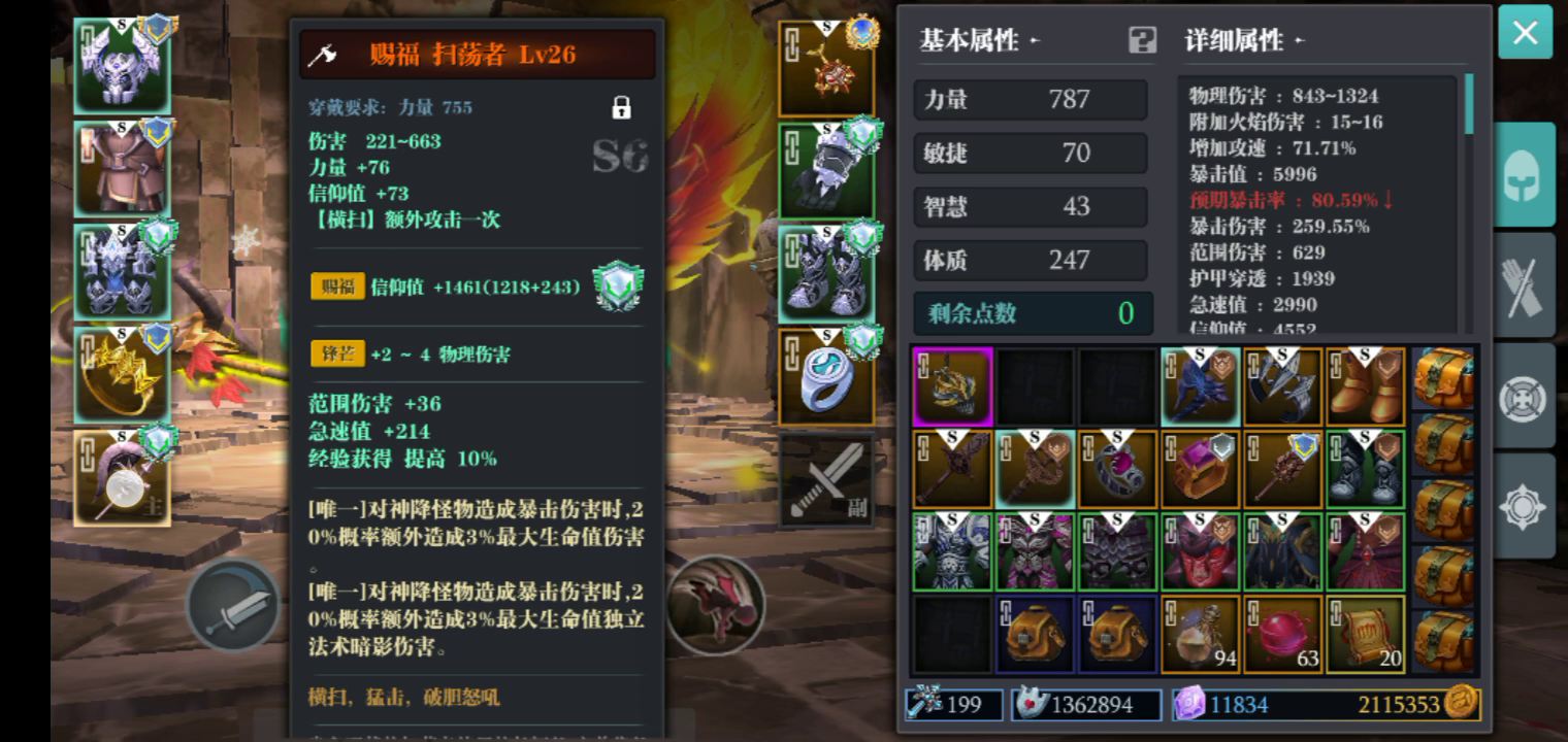 你们输出比我高 你们氪金比我多 玩?我还是快乐的! 宙斯的视线/神化项链陨石直接出现 爆炎元素弓 唤炎腰带 陨石套 法盘-气定宗师 也可快乐加倍弄个多重鞋子,放两个技能三重射几秒