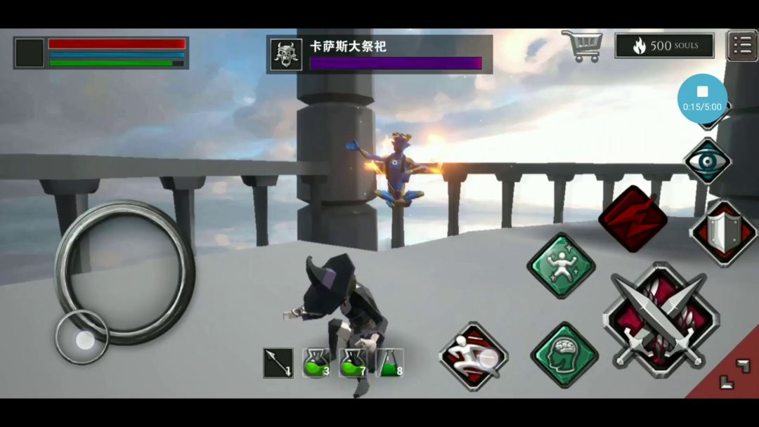 主教每次放完技能后都有机率放火球,火球分为两波和三波,脆皮两发火球就完蛋,主教瞬移后锁定会自动取消需要手动再锁定,注意主教瞬移后会抓取你,你要通过先翻滚与主教拉开距离再锁定。当打过半血后主都会飞到天上,地上出现四个球,黄色放激光,蓝色放火球,放技能时每个球会提前闪光一下,每个球都是打五下必击破,这里不能锁定球所以没法用法杖,建议用单手剑带保命技能会提高容错率,打到最后一个球时不再打球,(建议蓝球,