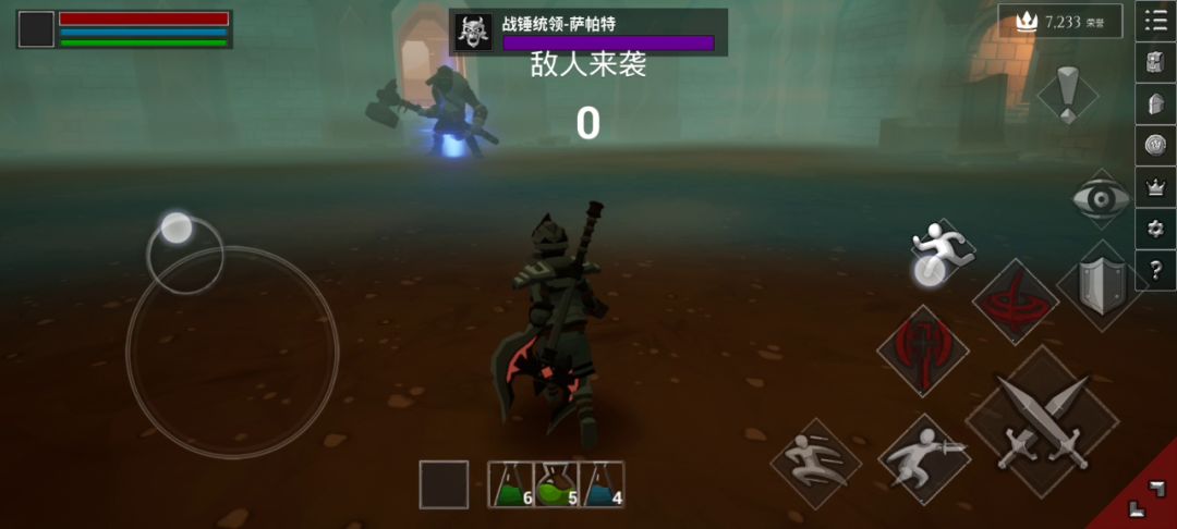 战锤统领,势大力沉力大砖飞者也,想轻松把它当十几点荣誉值刷得先学会它的规律 ①圈地自萌:战锤统领会用锤在地上画两圈并举起战锤接一段攻击(通常是一个砸地,偶尔会接个乱披风),哪怕你在范围内也不要紧,看见柄就翻滚,用跨栏的方式能躲过战锤的每一招(说不定以后会挑战一下无移动键过战锤?) ②砸地:大部分圈地自萌的下一段攻击,会有点快慢刀。锤开始砸那会儿就可以往战锤统领闪过去了,况且砸地会有很长的后摇 ③跃