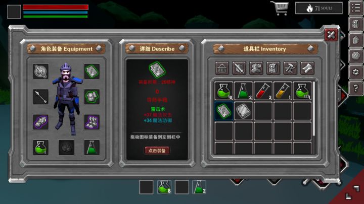 来自我的评论:(想要自己摸索的谨慎看)选择角色:这个游戏盾反很难,需要预判,看前摇不太看的出来;战士翻滚太弱,属性低的时候很难打;前期巫师蓝太少了,而且平a耗蓝伤害不高;弓手伤害低,而且箭太吃钱了,玩的不好一局打下来不回本;佣兵前摇后摇长,伤害还不如战士和双刀;综上建议新手玩双刀上手。前期属性强化: 前期先升级技巧和幸运属性(幸运属性可以提高魂收益和提高出现暴击的概率)(由于更新,取消了随机属