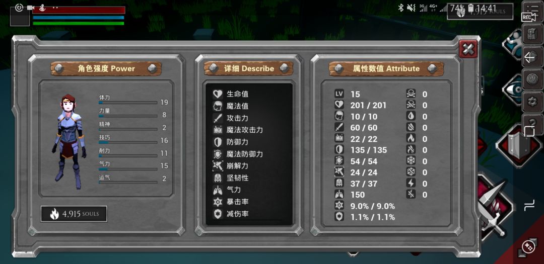 人物属性我点到12技,15气,其他属性皆属装备自带。这关我并不推荐点小眼睛,因为滑步的后摇比较大,并没有翻滚流畅。开局走到boss出生点(这里可以参考阴影处,这里就是祭祀的出生点),当倒数结束瞬间打他两下(这里他会抓你)快速打完后向后翻滚一下,当boss后摇结束,走向前贪6刀,迅速向后翻滚两下(这里他会释放类似于能量光罩的技能)。当他能量光罩结束后,瞬间向他脸上翻滚两下贪两下刀。这时他便会瞬移(