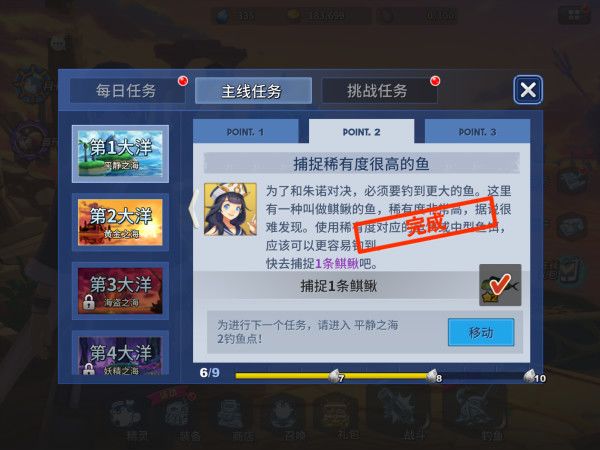 在钓鱼冒险岛当中任务系统是非常重要的组成部分,完成任务可以让我们获得大量的经验和装备还有钻石。任务一共分三种主线任务、每日任务和挑战任务,主线任务会让我们体验游戏完整的剧情,同时也会给我们出各种各样的难题。我们知道副本是随着我们等级的提升来解锁的,但是在副本中每一个关卡都有一条主线任务,我们可以选择在一个关卡中完成所有主线任务之后再去下一个关卡,也可以直接去下一个关卡或者副本开始新的主线任务。