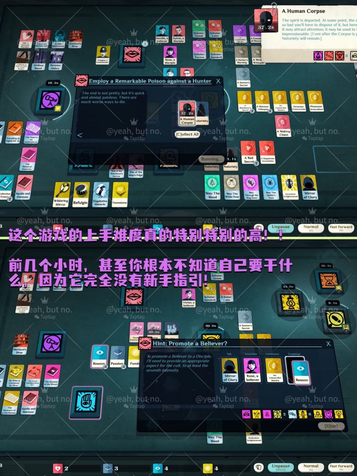 一个没有新手指引,文本量大到玩起来仿佛在读小说,,单局时间好几个小时却让人停不下来,一上来就让我莫名其妙死了十几次的游戏——我却愿称之为克系游戏的天花板神作之一!!它就是《密教模拟器》(Cultist Simulator),又名「社畜」考验卡牌游戏,玩家将扮演一名密教头子,要天天996赚钱,又要不断发展教徒,生活和信仰两手抓,还得随时小心被官方查水表!!没有攻略,没有固定玩法,上百张写满晦涩描述