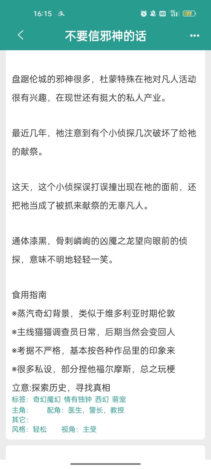 然后密教模拟器这本小说一开始是放在原创的,结果后面改成了衍生,这作者都写了这么多本同人,还和新人分不清衍生和原创似的