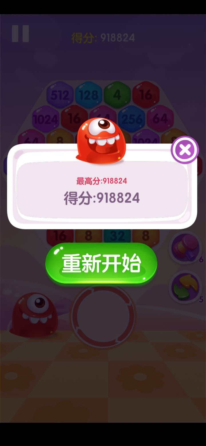 一直在找一个休闲类的游戏,地铁上可以刷一刷。大部分都消消乐都有体力限制,这个倒是没有要求,还是挺不错的。以前玩的六角型消除通常是用不同形状布满一排消除,这款有点类似2048的不断叠加消除。总的来说还不错~当然如果有机会开发几个不同的模式也是很开心的啦