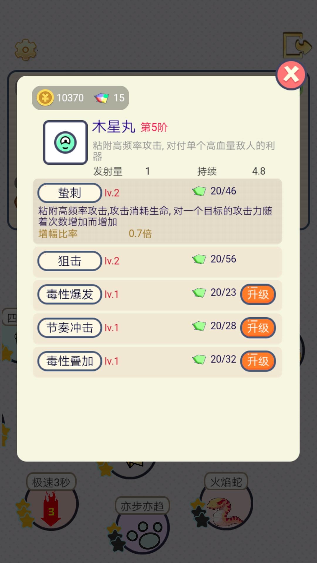今天做一篇关于木星丸的个人攻略 带大家一起来见识一木星丸的魅力(~ ̄▽ ̄)→))* ̄▽ ̄*)o 首先是一阶技能,这是木星丸的核心,也是木星丸的主要伤害来源(悄悄告诉你随着等级上升,再肉的怪也是脆皮⊙ω⊙) 二阶技能,听名字就非常厉害(゜ロ゜) 让木星丸有着开山之势 (果然伤害高不是没理由啊(ノ_ _)ノ) 三阶技能是元素伤害,补足了后劲不足的短板 跟一技能更向吻合(@ ̄ー ̄@) 四阶技能,节奏感是