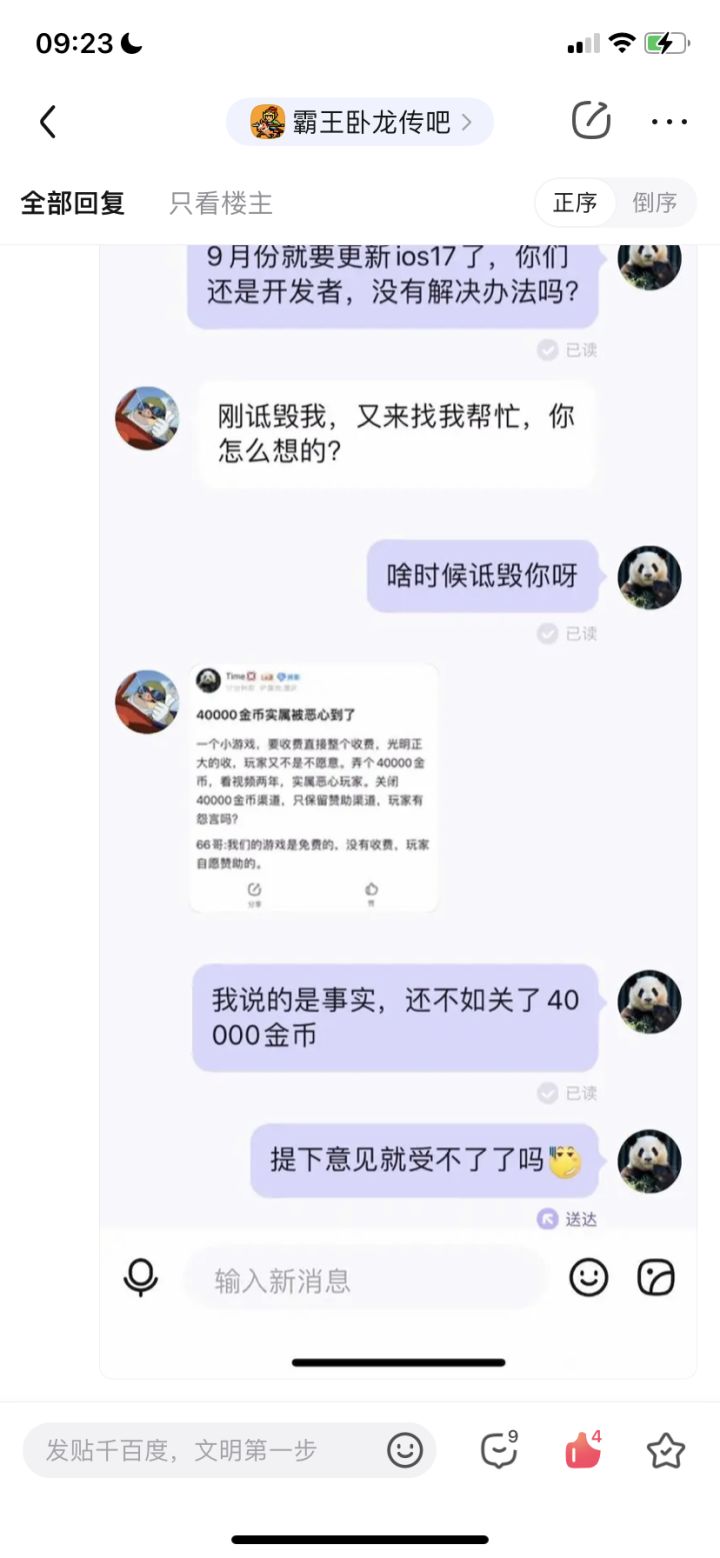 霸王卧龙传吧主 盗用隔壁 霸王的大陆吧的码 然后套皮骗钱 我们老玩家都给骗过 最初是卖金币给我们 100块1万金币 要我们加它QQ转账 并且承诺我们后期会更新新玩法 并给吕布关羽张飞这些名将做技能 然后一天一天拖 拖了1年多才更新一张图 给很多人骂了 并发了很多不利于它的帖子和留言 它把大家都屏蔽了 当时有老玩家劝我们不要赞助了 我们没听 ,接着又忽悠我们后面会好好做游戏,骗了我们第二次赞助,结果