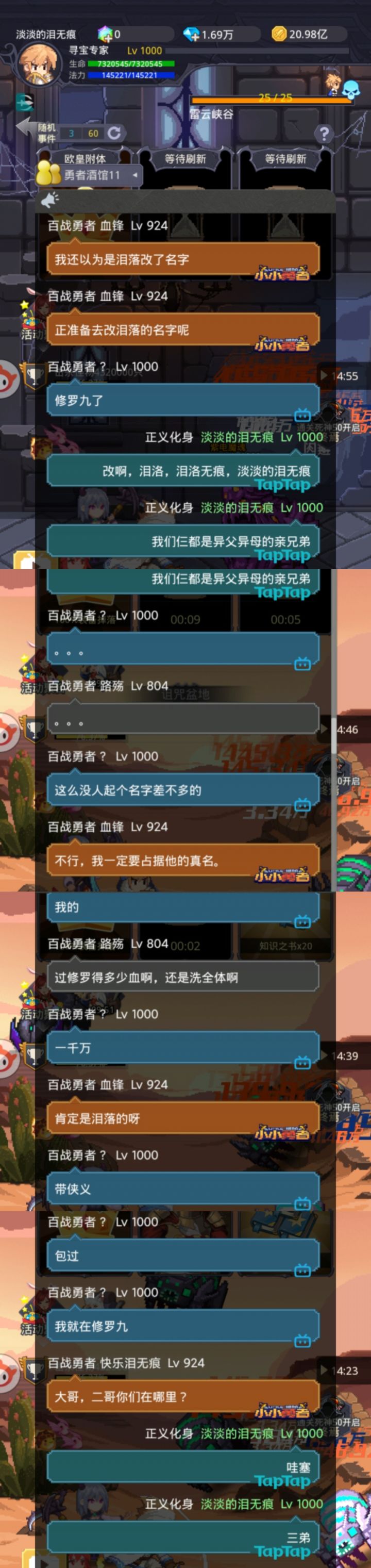 我叫“淡淡的泪无痕”,11频有一个活跃的叫“泪洛无痕”。一周前,我们俩相遇,经过交谈,发现我们俩竟是异父异母的亲兄弟,我们俩相见恨晚,相谈甚欢。今日,我又找到了一位亲兄弟,他叫“快乐泪无痕”。以下就是我们找到三弟的过程(因为不能截长屏,所以手动截屏,拼的不太好)