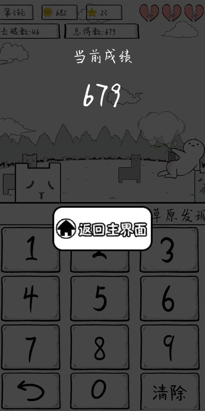 这张图是刚刚玩完截的,嗯,刚下下来,第一条命就交代了_(:D)∠)_首先第一点,关于右上角的血条,我一开始以为,虽然会被打屁股(雾)但是算对了的话是可以慢慢加回来的,但是我发现事实好像比我想象得还要残酷!!!妈耶丢掉的小心心完全一去不复返_(:D)∠)_渣渣表示好痛苦...然后然后,数字键盘上面那一行小字,什么有什么变态出没什么的,没记住,我觉得如果玩家专心算数的话,分心去看那一行小字会挂得更