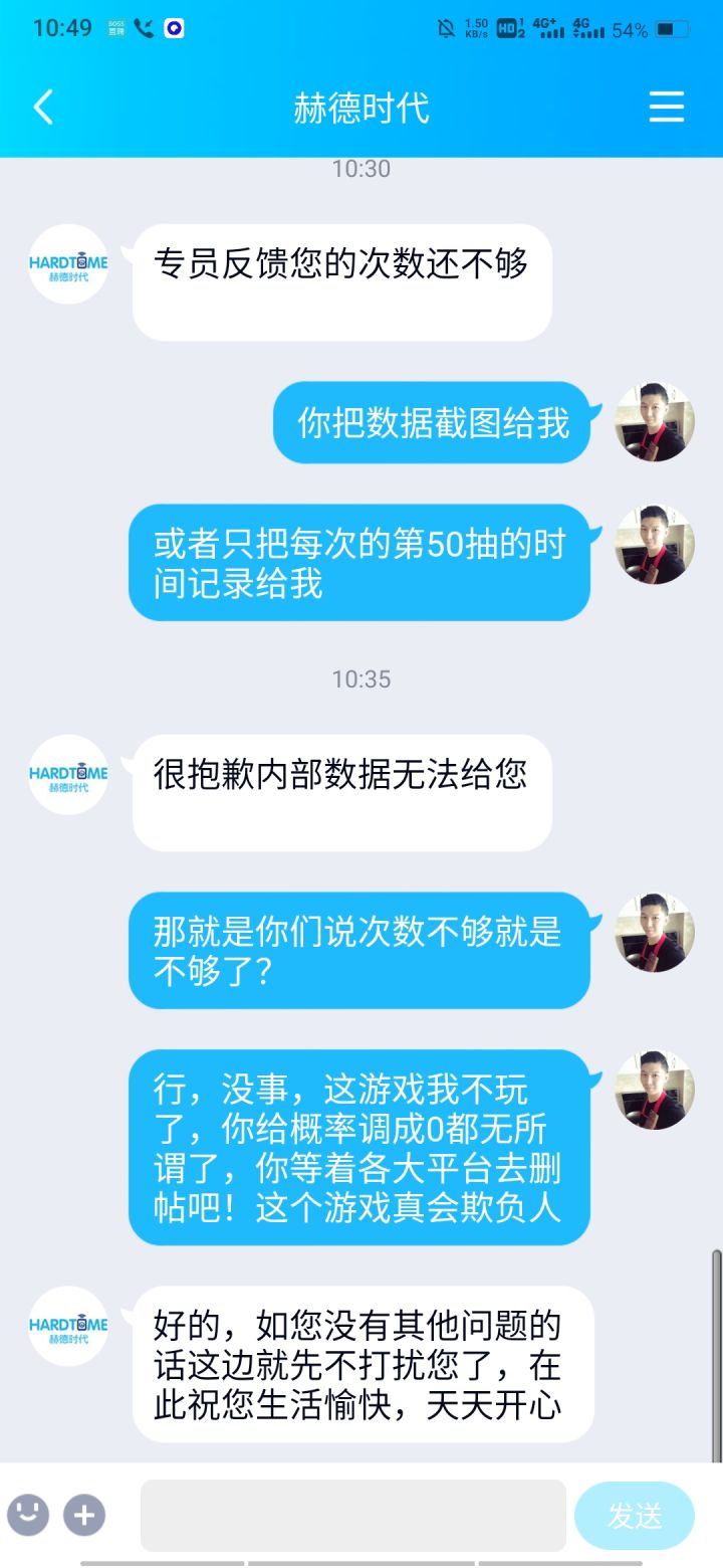 这个游戏第250抽都不会出红侠,找客服理论客服直说我抽不够次数,我到底要抽多少次才能达到您的标准?500抽吗?本人100区榜一醉者依然,不怕得罪你客服,你想封号就封吧,反正我不玩了,充的几百块权当打水漂了,奉劝各位别玩这个游戏,又肝又氪爆率还低!游戏过了40级就没有可玩性了,说开服5天跨区pk,现在都已经快20天了,跨服战都没开放,策划也是对这个游戏破罐破摔了,两个充值活动三天一轮回,也没有新花样,新玩家不要花冤枉钱了,你不充钱可能会有红侠,一旦充了钱,那就是大保底出红侠了,甚至和我一样大保底也不会出红侠,而且客户反馈那是张嘴就来,说你抽的不够多那就是不够多,没有为什么