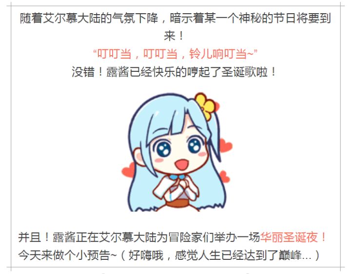 勇敢的艾尔慕冒险家们:为了给大家提供更好的游戏体验,原计划2019年1月4日9:00-11:00的更新将移至2019年1月8日9:00-11:00进行全服更新。细则如下:【维护时间】:1月8日 9:00-11:00【维护范围】:全服【维护方式】:停机维护【维护内容】:新增活动奖励[挑战大礼包][每日活跃礼包]新增兑换道具[三色绘板]局内外bug修复&优化维护期间服务器将无法正常