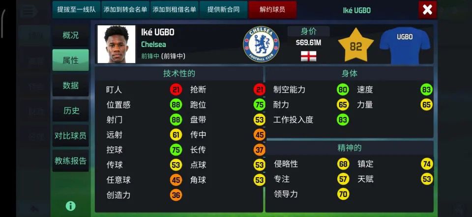 该贴转自梦幻足球世界管理员天哥,由马列兹曼稍作修改转到taptap 此贴是个大工程,所以要慢慢更,也欢迎各位补充🙈 以下图片转自群内大神-憨狗①只 首先是切尔西小将乌格博,游戏中租借到了荷乙的罗达JC,位置感和射门都非常不错,速度和制空也不差,在豪门中可能数据差了点,但如果是小球队开局可以搞一手 切尔西小将亚勃拉罕,现实中已经证明了自己的实力,游戏里速度力量置空射门跑位盘带都首屈一指,并且鸭勃游戏