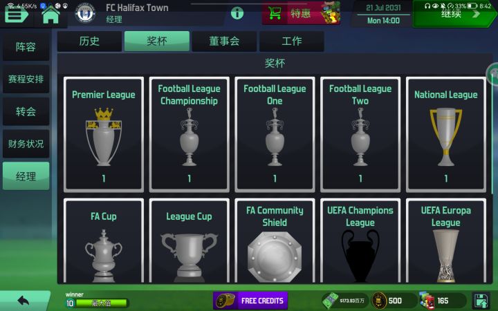 没想到这游戏还能活,我把我玩得版本发出来叭(之前找过好多说是破解版的要么不能玩要么是假游戏,悲,这个当时也说自己是破解版,可惜也没破解,但至少能玩了),单机能玩,不能氪金不能看广告,只能正常玩,进去会显示要更新到新版本,只需要按手机的返回键就可以了。比如说我的pad返回手势是屏幕边框向屏幕内滑一下,显示需更新新版本时我只要滑一下系统判定返回就可以关掉更新显示开始游戏了,进去以后还会有一个更新,同样操作关掉就好,不影响。附上我英超5级联赛全国联赛12年打到英超拿到冠军的fc哈利法克斯镇~