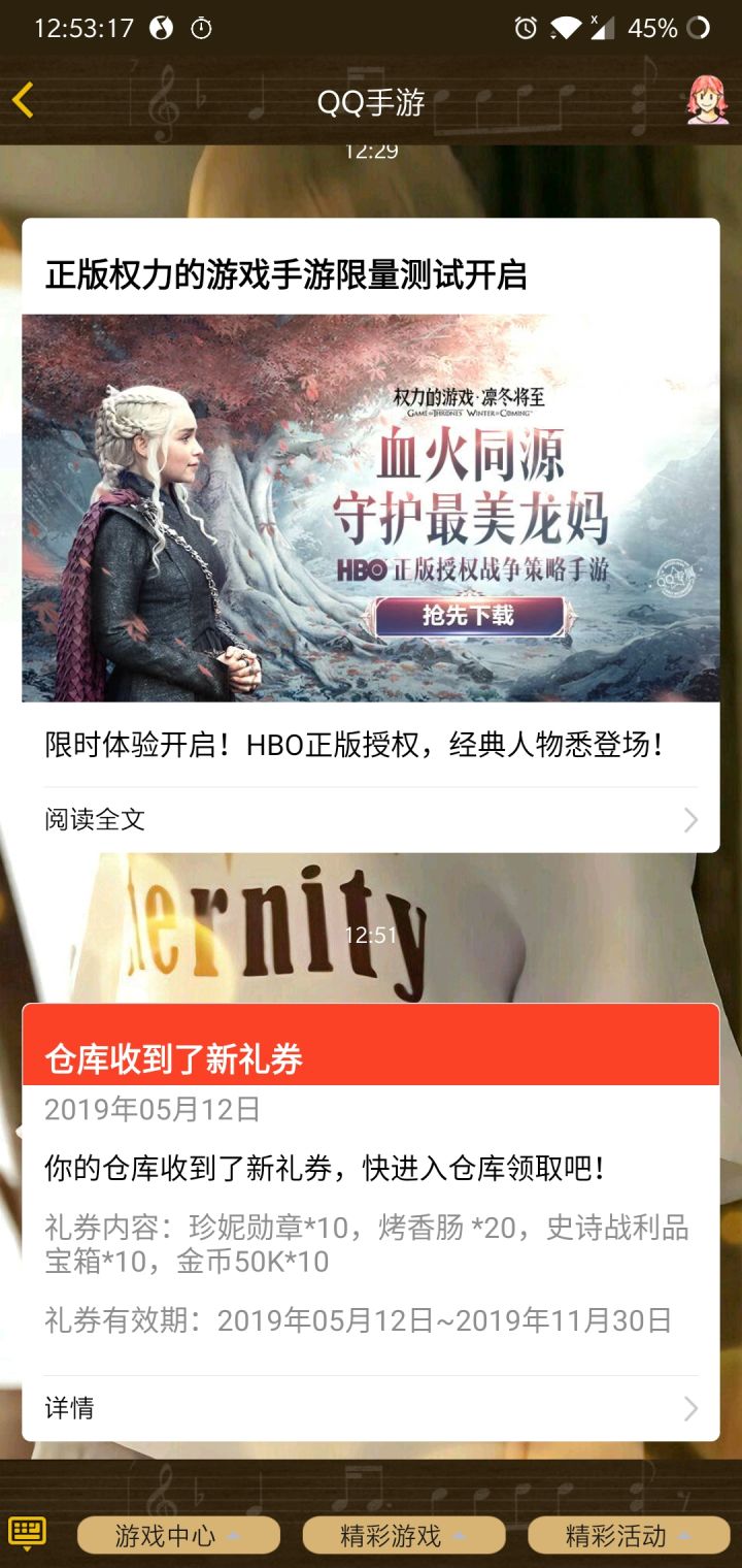 《权力的游戏 凛冬将至》5月23号全境集结冰火内测正式开启,期待着领主入驻维斯特洛大陆,共同见证铁王座的最终归属。如果领主大人在游戏体验有任何的BUG和建议记得提交给讯讯,我们将始终为游戏的继续优化而努力。【活动时间】2019年5月23日-测试结束【Bug反馈回帖格式】手机型号(手机设置-关于中查看):系统版本号(手机设置-关于中查看):账号系统:微信/手Q体验账号:角色名字(重