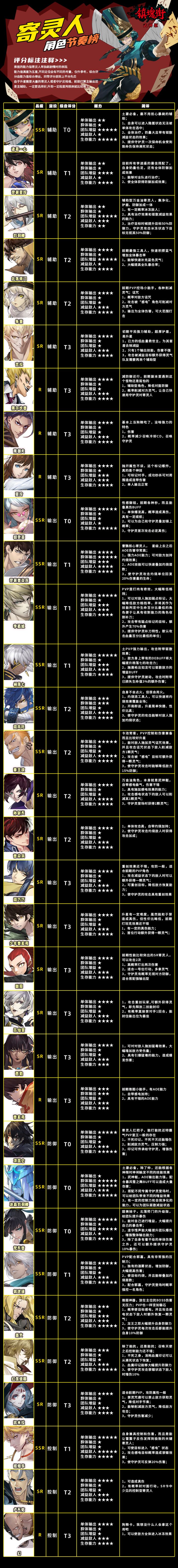 兄弟你这攻略还是一测二测时候的吧,嘉年华六折1080跟七折1260都取消了,现在一律八折1440。白嫖前期想拿低保更难了。寄灵人现在sr孙斩天才是排面。灵曹除了嘉年华没有来源,白嫖前面不用养。孙斩天普曹阎风吒刘羽禅白嫖前面养这些。氪佬肯定是ssr,毕竟星级压制。sr满星才12星ssr满星18星。灵玉获取难了,平均一颗星5灵玉。开服在线奖励领满90灵玉。人物技能都有一部分改动,可能还有些地方还有改动,具体明天再看看吧。改动完之后降低了白嫖的资源。拉大了跟氪佬的差距。