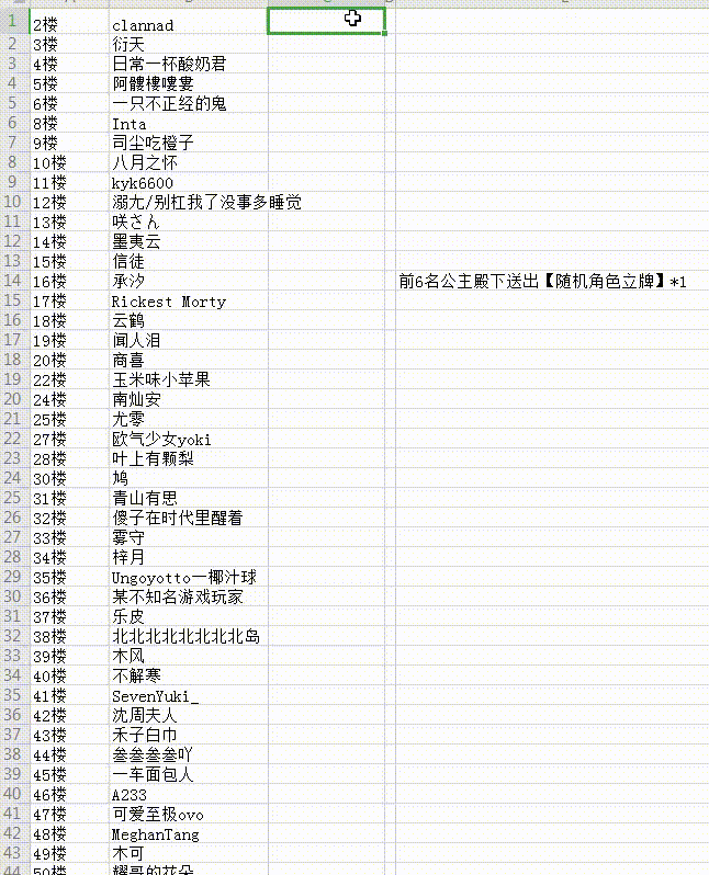 恭喜以下6位公主殿下获得【随机角色立牌】;