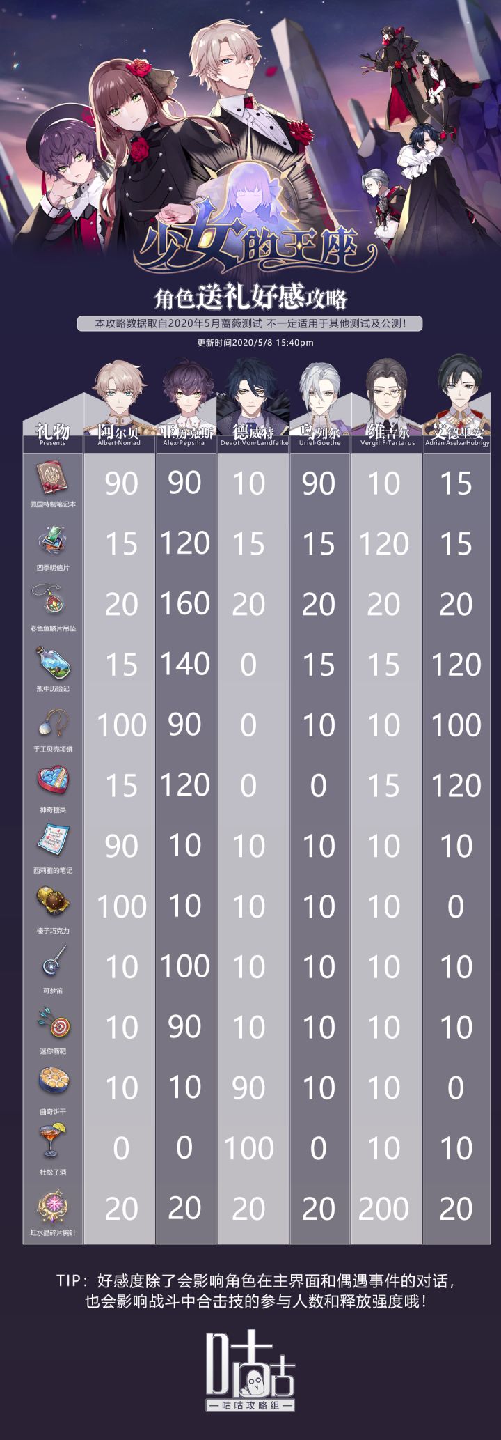 【咕咕攻略·蔷薇测试·好感送礼攻略】