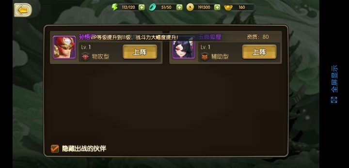 伙伴上阵时无法选中也无法退出