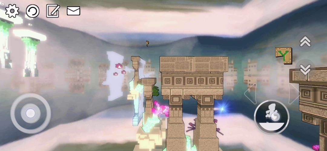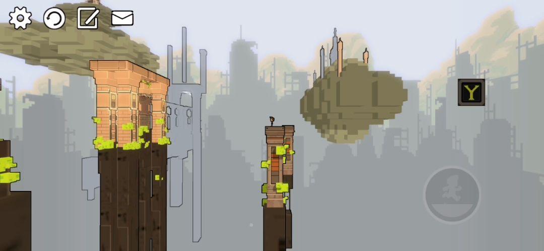 这个官方攻略视频太老了 都不更新 真是的 (这是骂自己吗)相信我 这里没有什么移动的柱子 这里需要用到Y道具 就是右边那个大写的Y 可以将视角调整 从而让对面那个柱子高度降低 跳上去 妥妥的