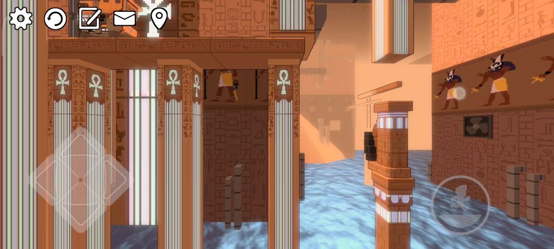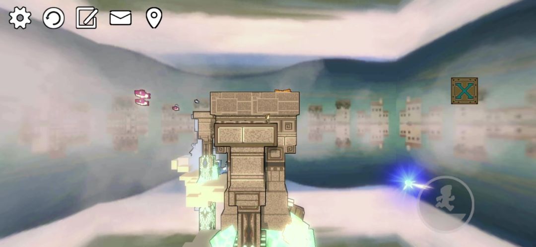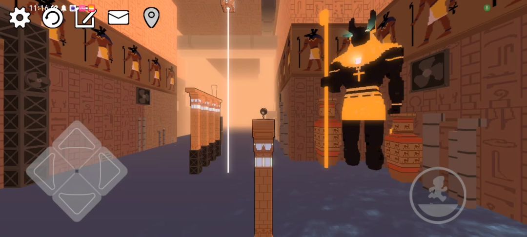 这里注意两根柱子上各有一个光点 一个有光 一个没有 还有注意机器人身上有一根黑线 需要利用这根黑线将光点的光传到另一个点去 这需要走位和选择合适的视角