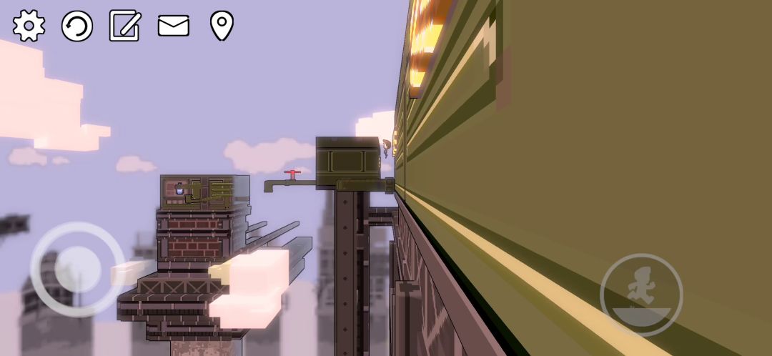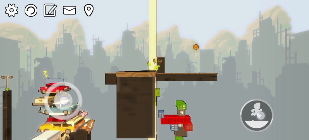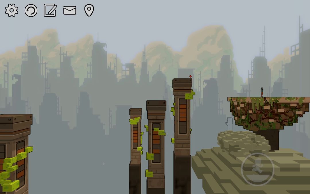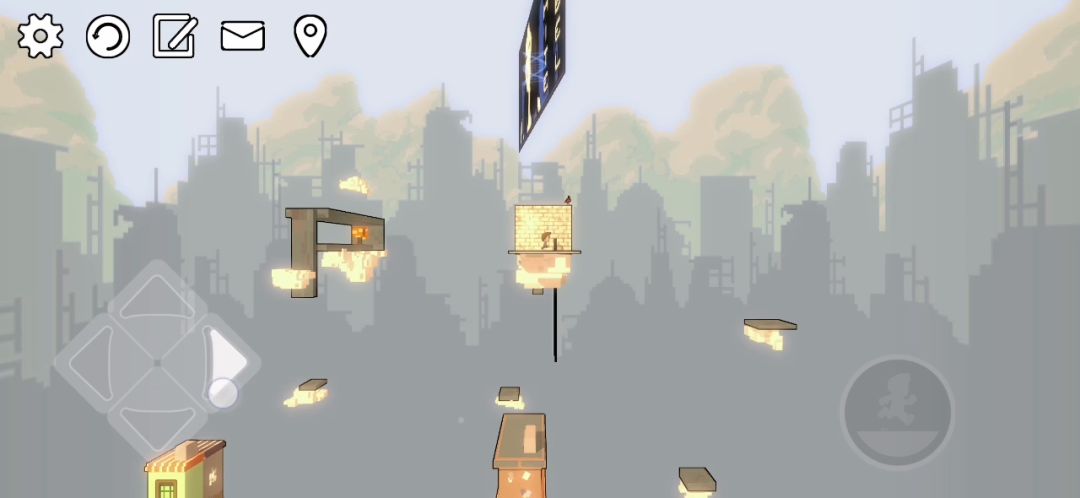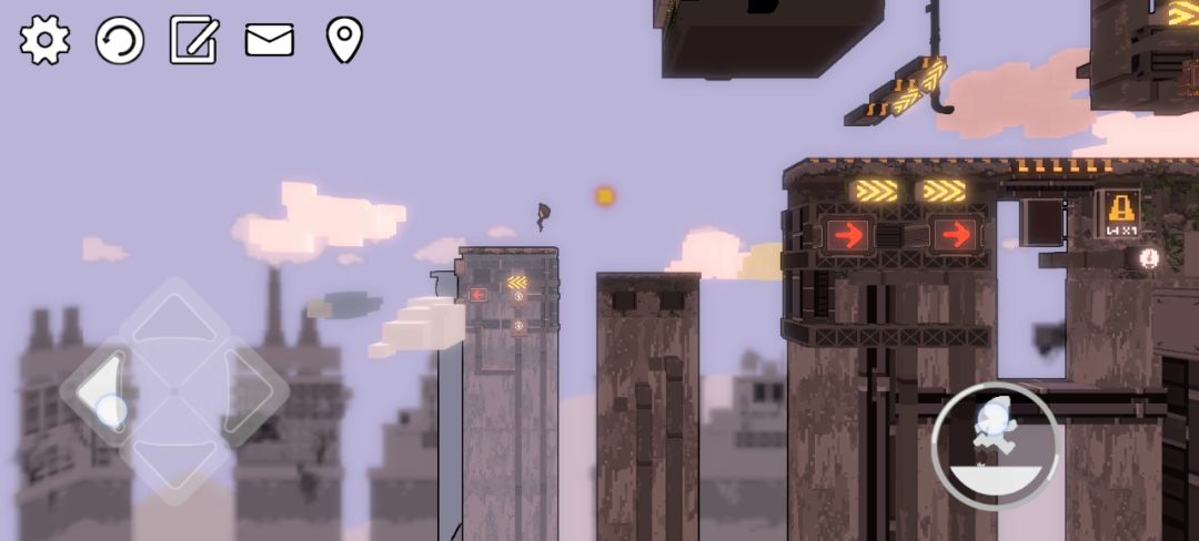 视频最后这个视角下 让小人往左移到平台的左边 让这个平台和右边机器人所在平台在视觉上连接起来 让机器人移动到这个平台上来
