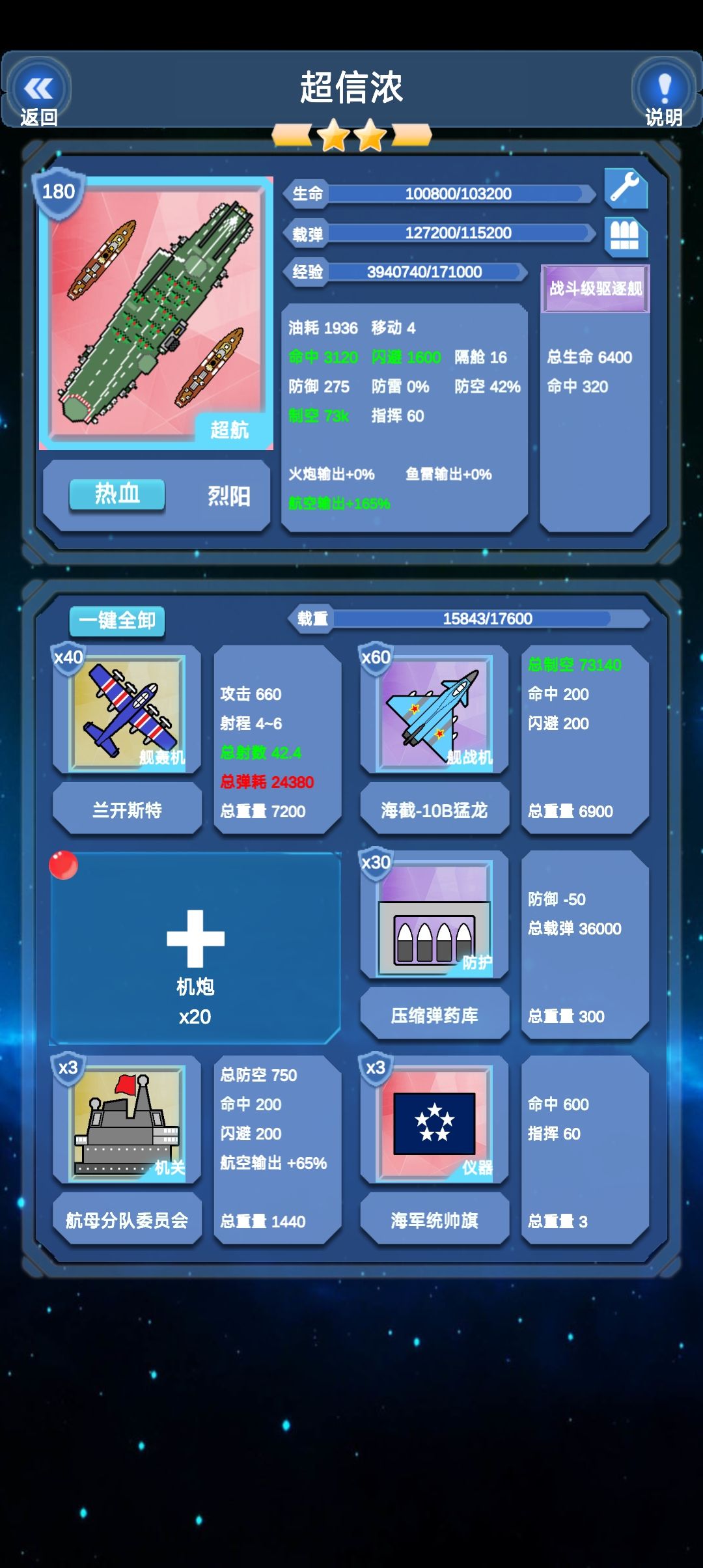 为我之前留言暴论“天梯还不如第一关难”抱歉,那时候(就在昨天)还太幼稚了,一天过去我成熟了很多[表情_斜眼笑][表情_斜眼笑] 6船天梯有点凶险,主要是到后面几个船没弹药了。不敢带补给船,因为没位置,海宴高闪避高防御高拦截除了最后的核潜艇外可以藐视一切,如果4航母输出明显不够。