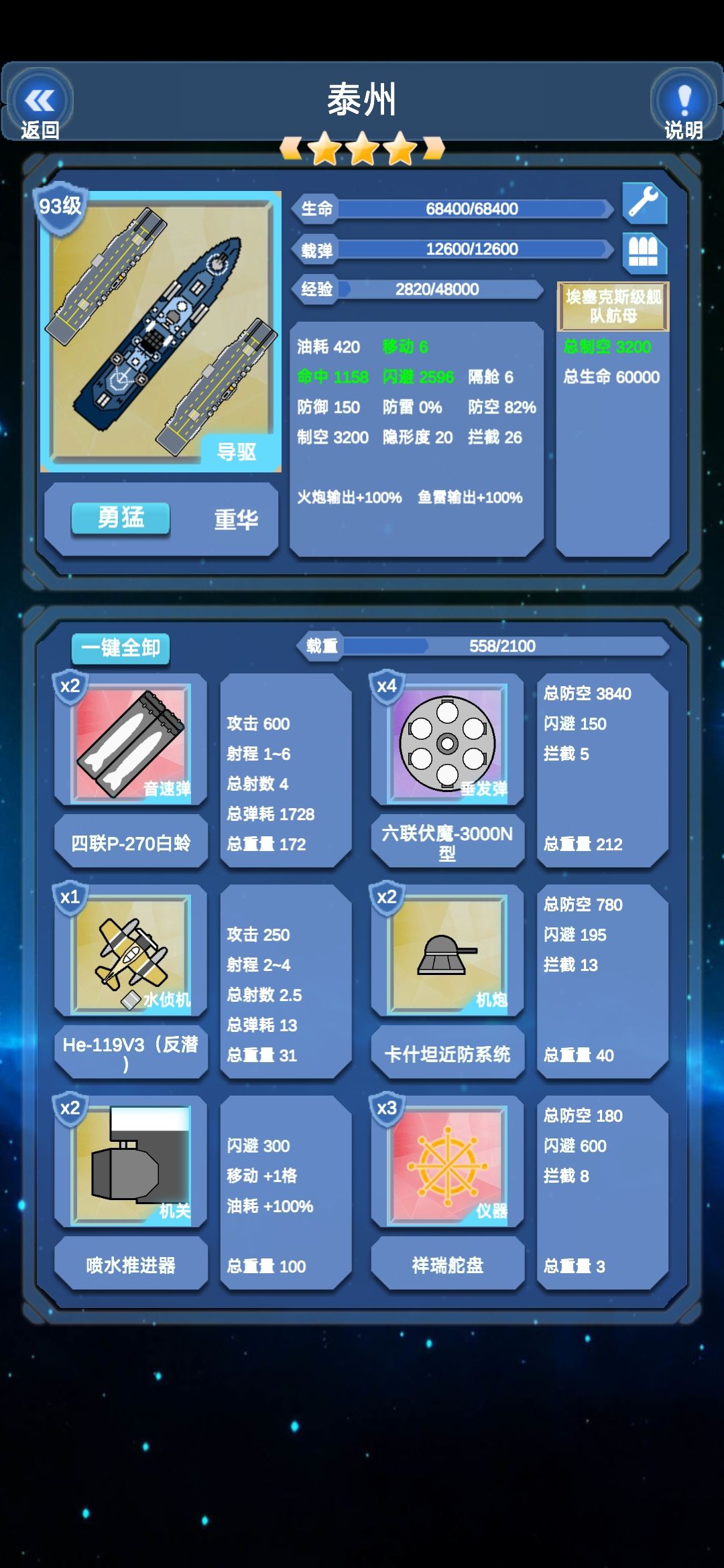 鉴于当前版本(22.0128)已经大变并有段时间没有新攻略,本萌新决定帮各位萌新同胞总结下经验,注意本攻略大概率有极强的个人色彩个人观点,不可全信 1.四大金刚,前版本的四大金刚是逃课神器,重潜图纸传承,点杀无敌,但是现版本已经被砍寄了,现版本已经不能点杀一切了,而且传承改为6-4才掉落的小型导弹图纸,所以四大金刚已经不再可靠了,不要再信前版本的攻略 2.商店买啥,基本上没有什么好说的,反正两天左