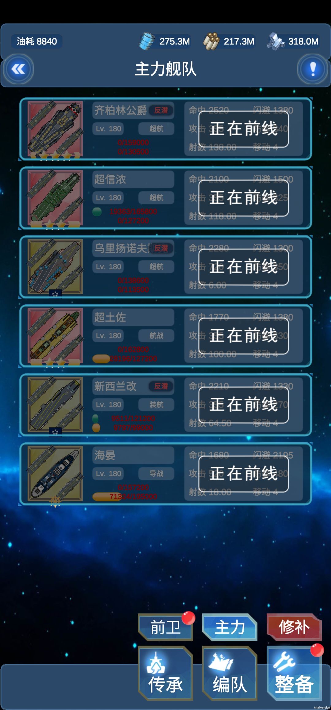 闪避肉盾 泰州 深圳,深圳可以进主力舰队太猛了 音速弹输出 海天 海圻 名字很长的苏联航母,这航母制空别大,还能带音速弹,就是弹耗太夸张了 清潜艇辅助 生驹 筑波 福煦 舰侦比水侦好用多了 导巡关岛也不错,比新罗西斯克猛,可惜被我升级成鸡肋的两攻了