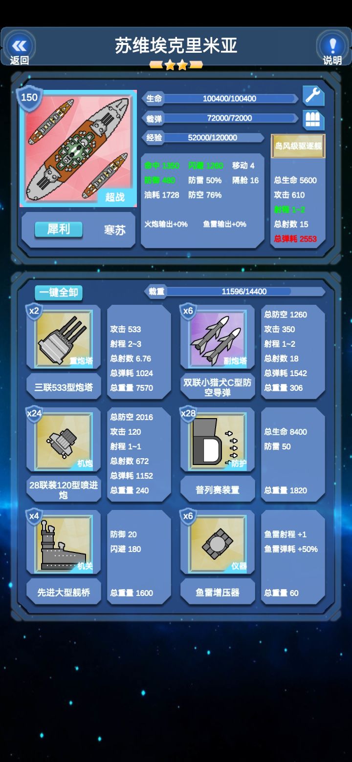 顶配攻略,不考虑Pr.24之类的过渡船v.240530仅代表个人看法默认舰船等级较高土佐重炮塔带双联黄铜骑士F,其他同航母1. 导战、超战、要塞装备载重分配优先级:机关>仪器>高速导=鱼雷=拦截垂发(=近防炮、近防导弹)>重炮塔>防护>维修塔>机炮、高平炮、副炮塔、垂发重炮塔:裸射数达到9的情况下优先攻击,这样上扬弹机后保证可以秒超战因此可得出现版本装备排行:5炮塔:2联黄铜骑