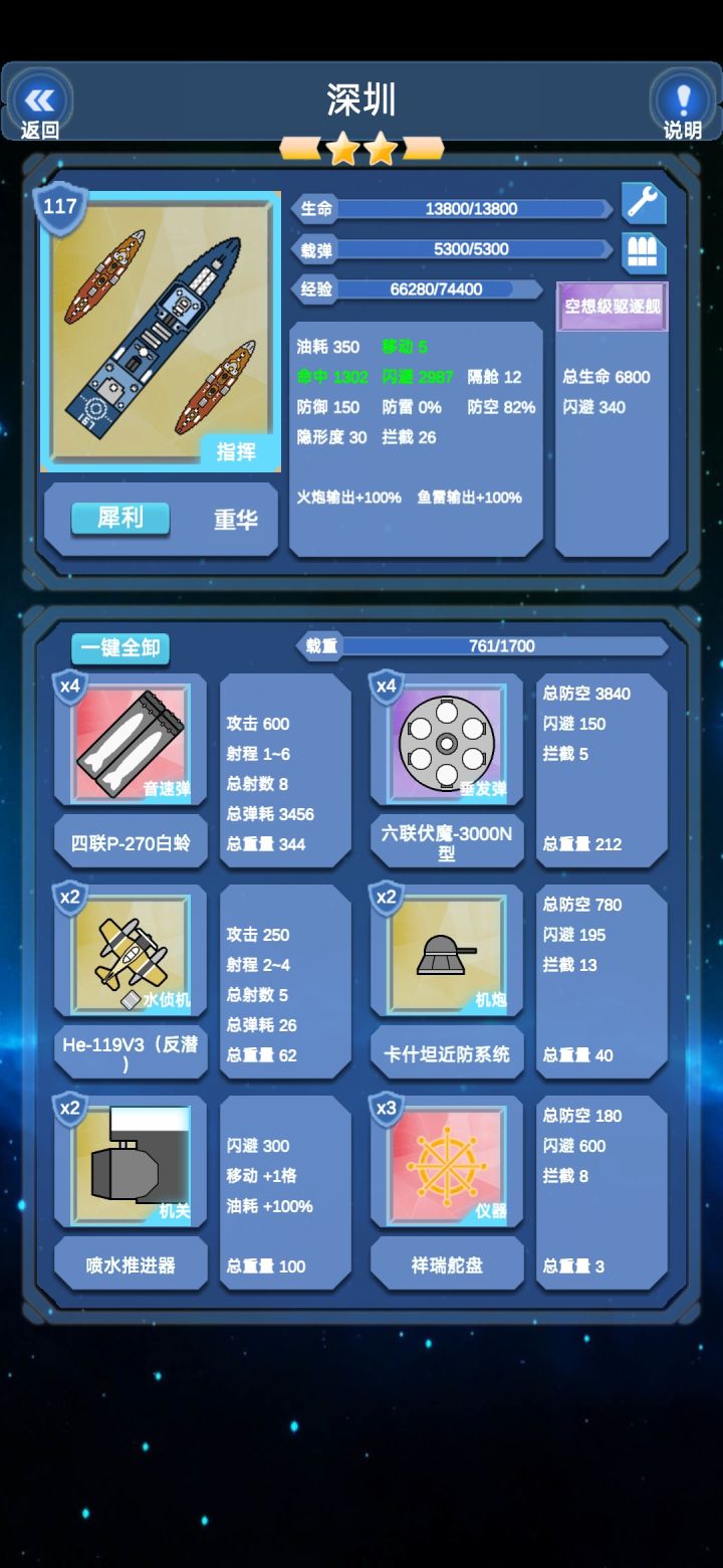 新版本三神个人感觉是原来淘汰了原来不少东西啊首先是出道以来就感觉没吊用的经远级,在这次更新后直接成为三体人。看看这面板的八导弹(哼,象龟?必叫你有来无回!)而且从隐身度、基础隐蔽和血量等方面压制了之前版本能进主力舰队的闪t深圳号指挥舰,那别的t就更不用说。然后是定镇了,这红彤彤的八导弹效果类似于经远级对深圳舰的。取代了之前的闪t海天级,虽然血量上差了海天一点点