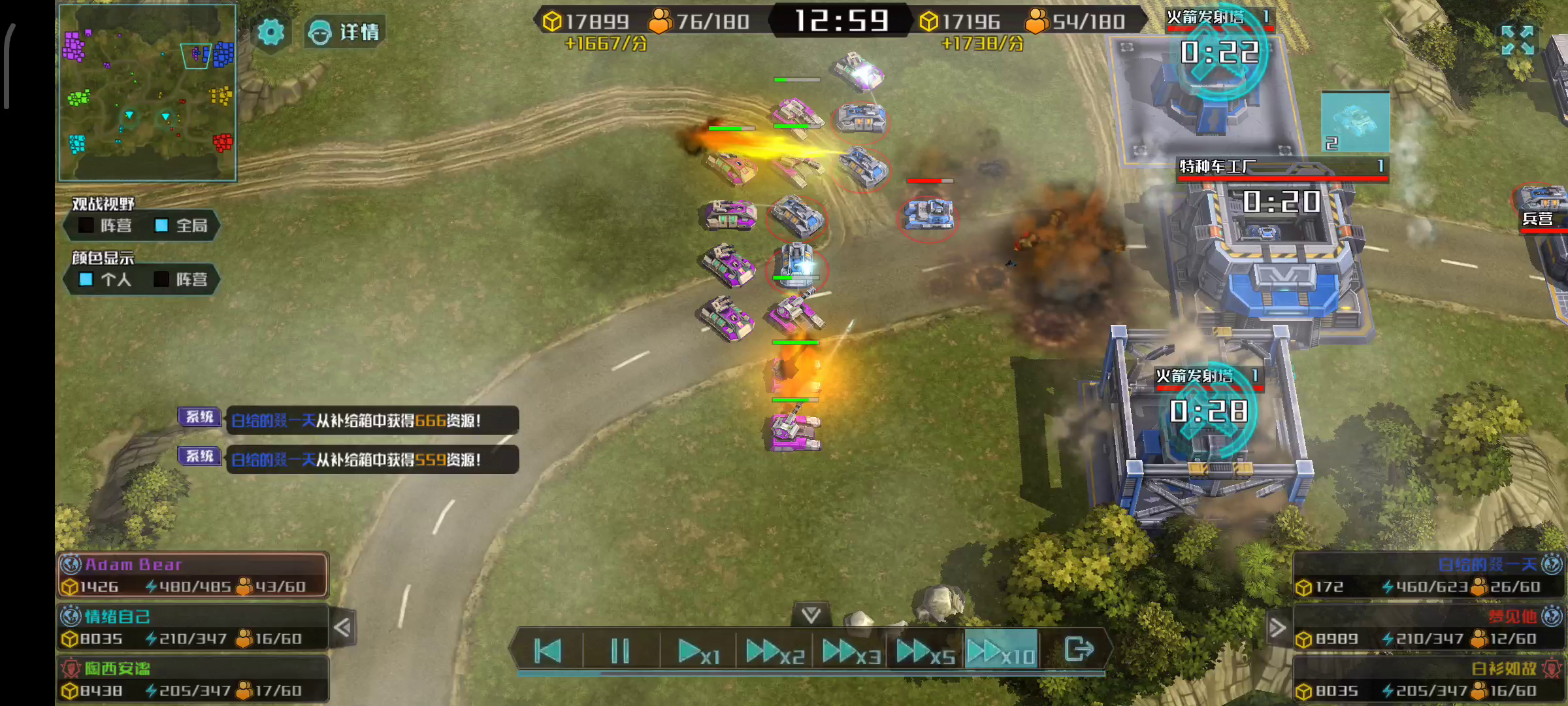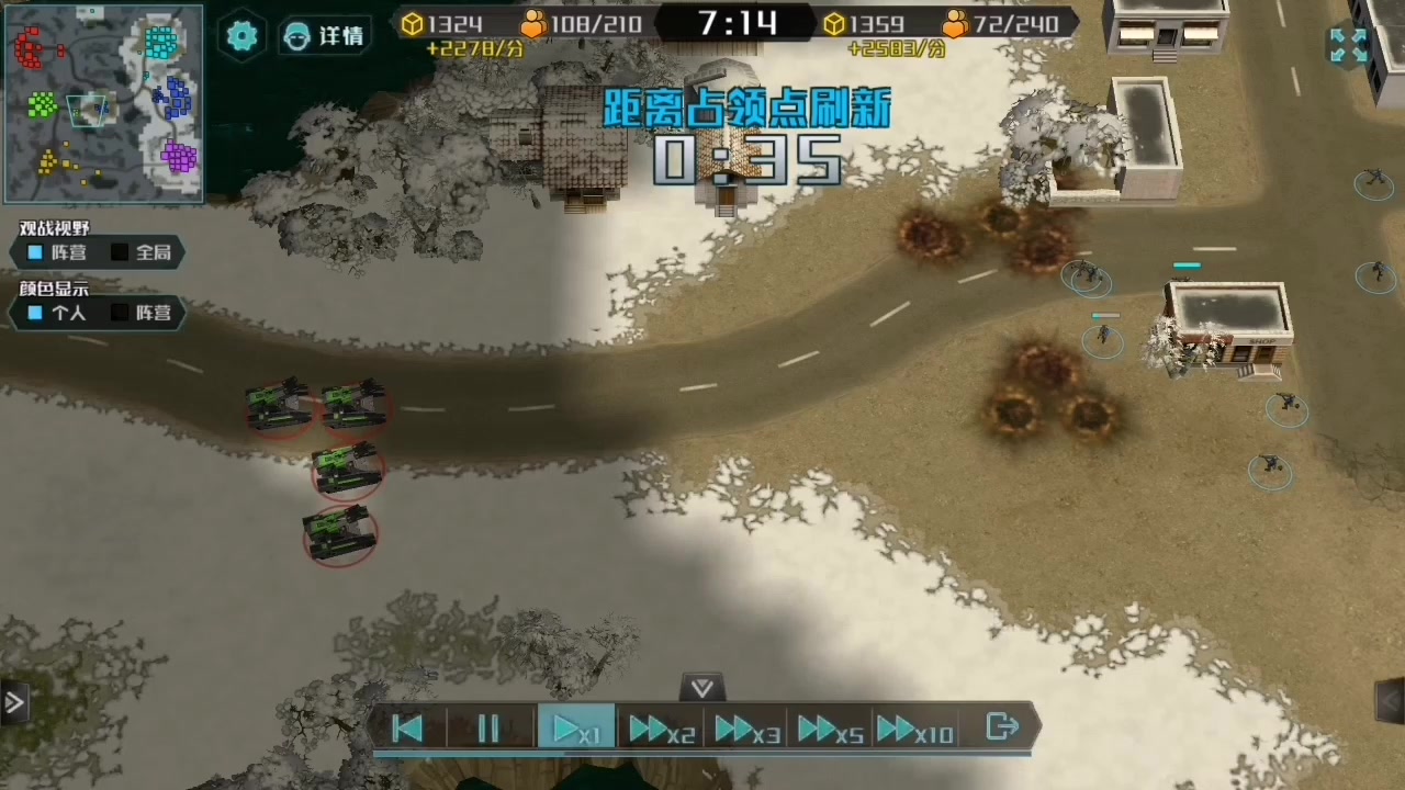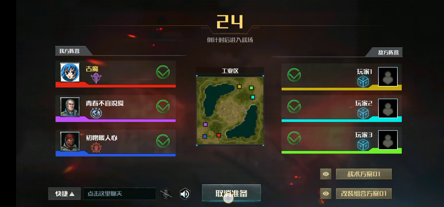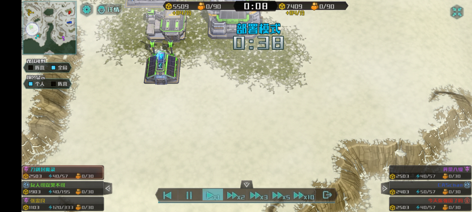 蓝军通用打法,简称蓝通,是我在陆行盾实装之后较早提出的以陆行盾为三级主力的流派,因其适用性强、子体系多变而命名为通用打法。蓝通的运用对玩家意识和操作有较高要求,包括抓timing(从对手流派推测对手内防空虚、经济紧张的关键时刻并进行骚扰压制),及时转型,手动锁定,拉扯残血,等等。视频中我作为右侧中间的蓝军,展示的是在较小地图中蓝通的偏激进打法。 开局我方位于地图右侧,下方紫军选择两资单船厂开局(后面证明这是一个错误的开局方式),我选择了两电三资的铁拳逆火开局,上方红军选择了运营开局。 在意识到对面海军产能优于我方、且中路蓝军选择了速飞机的情况下,唯一有地面支援能力的玩家应该是上方紫军,故选择骚扰压制对方海军,此时对于上路紫军来说支援用时最久。但由于我方海军产能不足,此次骚扰最终失败,对方转入优势期。