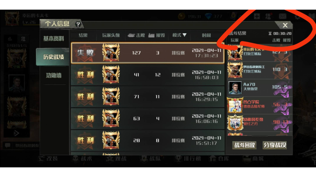 我刚刚跟朋友三排,玩到后期明明已经稳赢了,可到了30分20秒的时候突然出现游戏失败,我和另一个队友的基地明明还在,出去看回放,看到了30分20秒后既然还有记录,对面既然还在动,凭什么!!!