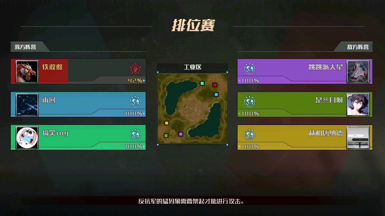 原本上校一星,想冲元帅,这匹配机制爱了,原输2把就不说,输了就给你匹配人机,低段位匹配人机(前期是可以打进去,我打的反抗伤害低了前期打不掉)我家人机被对面搞了,我去帮,自己却被对家人机打进来(人机不知道帮队友,我去帮后还剩40多人口)