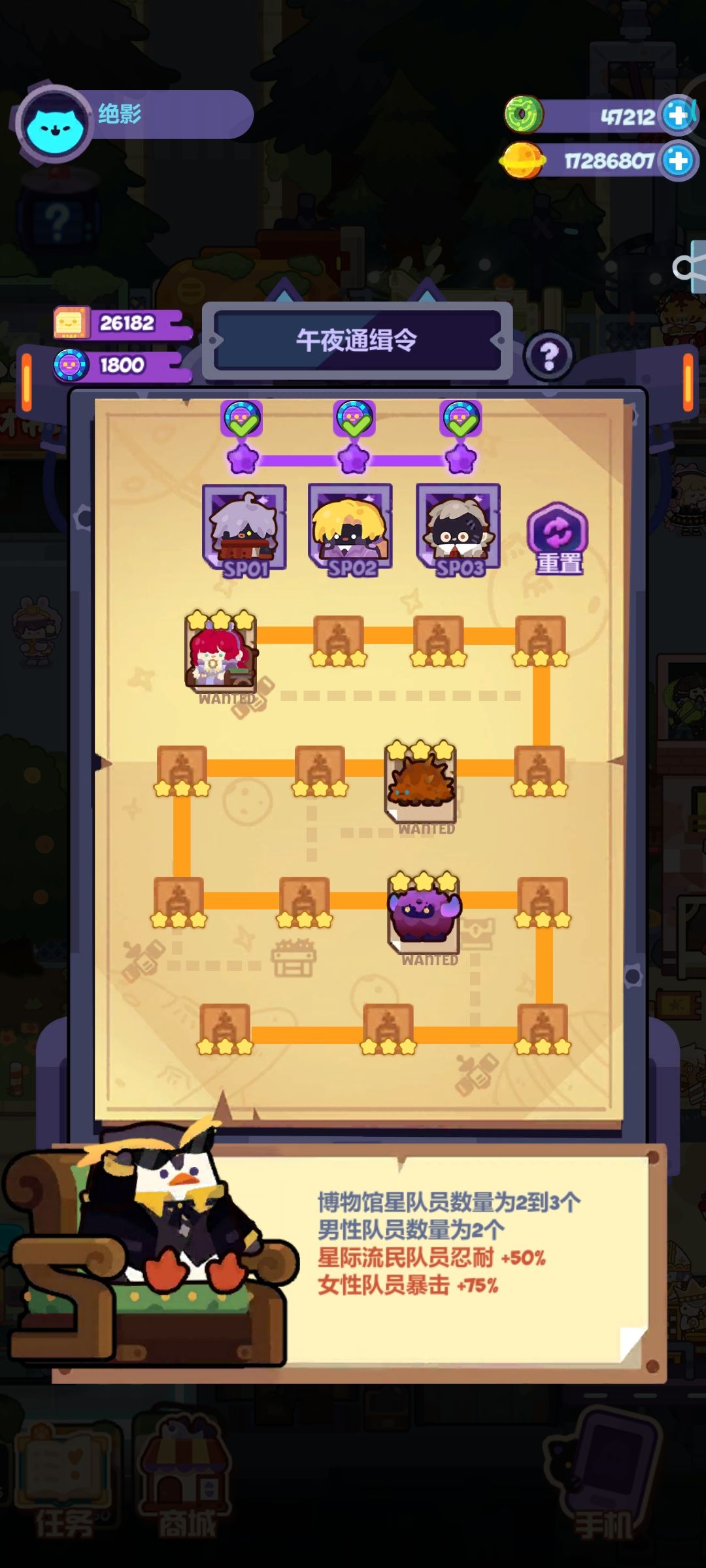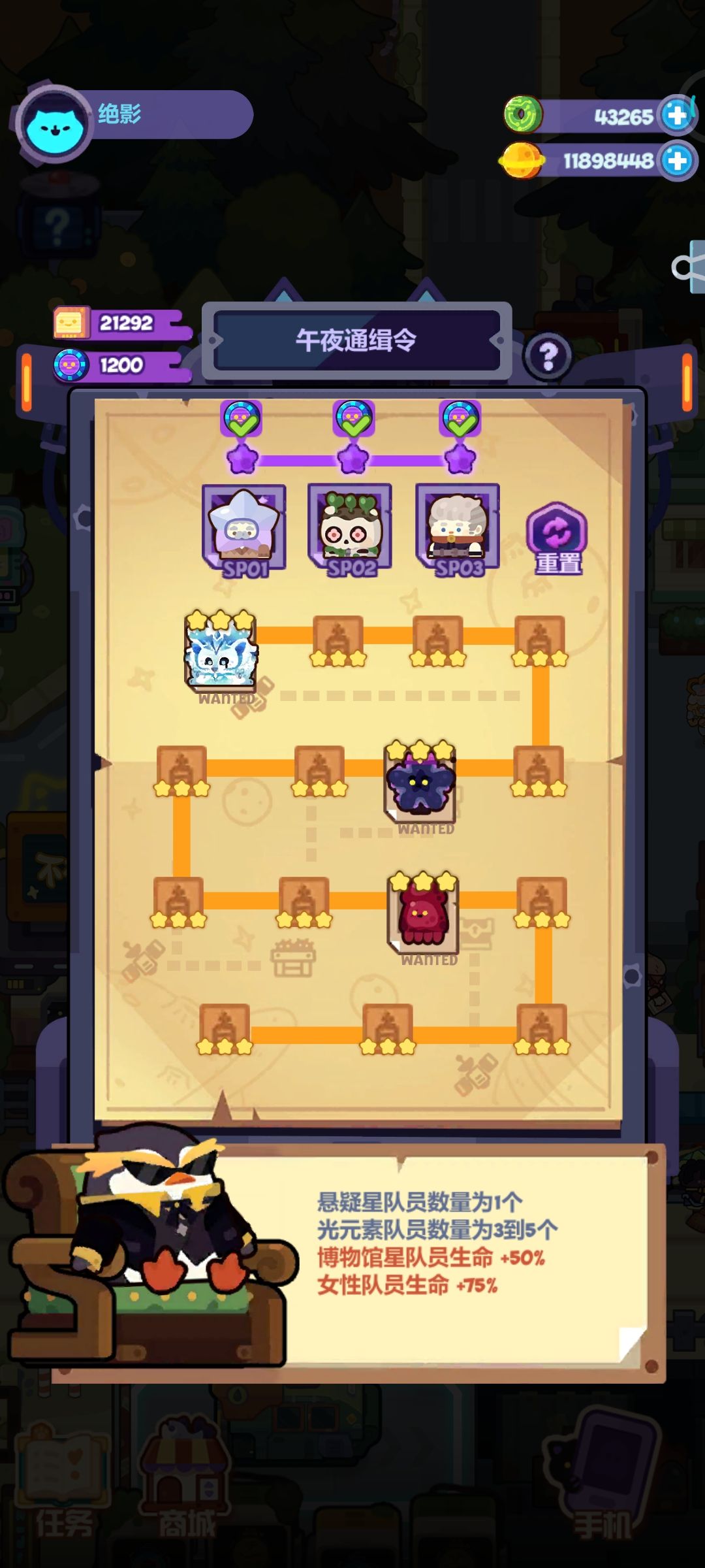 这周是喜闻乐见的新SP阵容,熟悉的超能女王仿佛带我回到了2021年的2月首次45星的流亡街,可是时过境迁,现在竟很难做她的攻略,只不过不是因为她太强,而是因为米洛卡问世以后,流亡街和SP都太弱了…… 1.流亡街15关 笔者上了个焦糖不小心把她秒了,只能凭空组一套试试了,6回合拿下应该不成问题吧。 2.SP关卡 难度不大,插卡更是随便打 ①零氪稳定版 SP1:二筒(宠)+玉璧+侦探+白骑士+德鲁伊