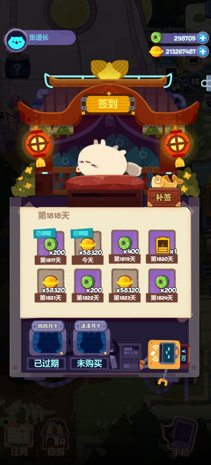300天混到了主线700,(其实有几天忘记了签到了),一个活动没赶上所以很多角色都没有,一些攻略贴看不了,很多纯乱搭配勉勉强强才过的主线,科技馆打不动就没管,米洛卡不会用,随便抽了一些,后面基本也就是挂机每天上线收收食材道具了。之前本来想着随便注册个号来蹲蹲的,没想到其实还挺有意思的,不知道为什么突然就跑路了,现在连流亡街都没了,可玩的真是更少了,玉璧也更难得了,还有好多需要危险电池的角色都没升级
