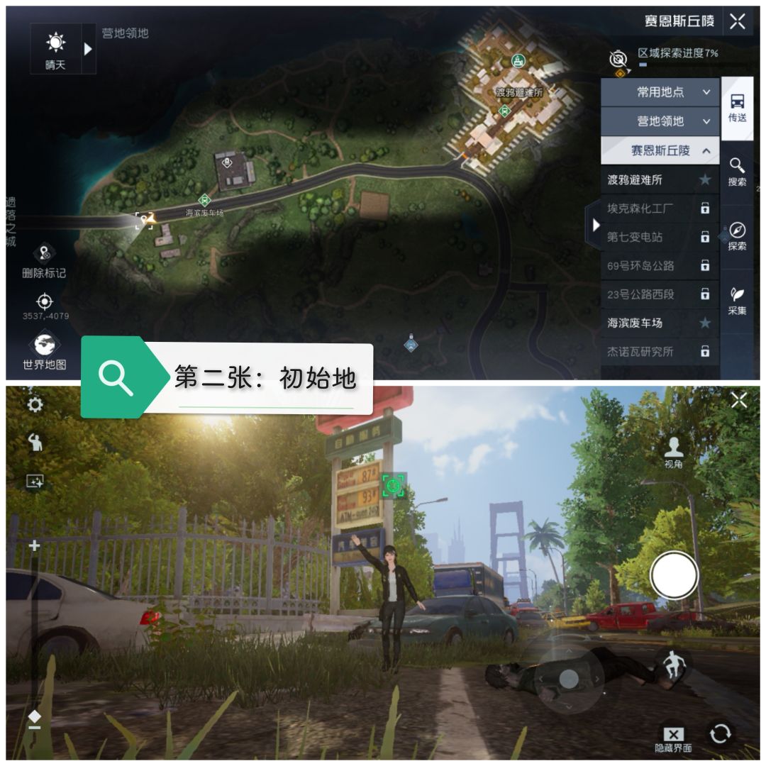哈喽,大家好!黎明觉醒目前共有7张明信片图鉴,完成全部收集后会获得成就和奖励,一起来看看怎么收集吧! 第一张:希望 收集方法:随着主线任务的推进,自动解锁; 第二张:初始地 收集方法:前往赛恩斯丘陵地区的海滨废车场,找到图一中的广告牌位置,玩家站在附近会触发打卡拍照选项,打开拍照可以看见绿色的提示,然后完成拍照即可解锁; 第三张:埃克森化工厂 收集方法:在赛恩斯丘陵地区的埃克森化工厂处完成拍