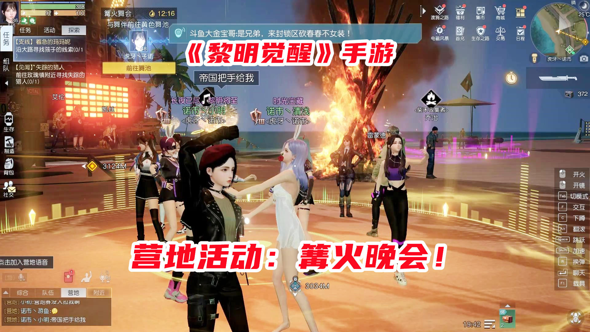 黎明觉醒手游试玩:营地活动篝火晚会!点燃篝火参与答题匹配跳舞,黎明觉醒:营地玩法篝火晚会解说!参加活动获得营地贡献还能跳舞