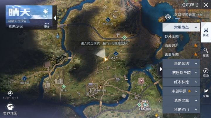 今天小编就给大家带来黎明觉醒红木林地的资源密集点,本帖适用于1-29级萌新玩家~刚入坑的萌新宝宝们也许会困扰于找不到资源采集点,频繁跑图导致资源采集速度慢的困扰,现在小编为大家收集了以下资源密集点,希望可以帮助你加快采集速度,摆脱跑图烦恼~红木林地盛产一级资源①资源密集区(罗斯化工厂)我们首先可以传送到右上角罗斯化工厂路牌,找到图示大致位置,各类资源都可以采集一点,采集类型多样,可以快速搜集