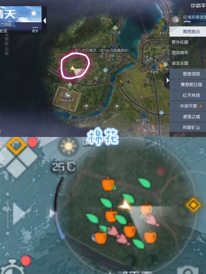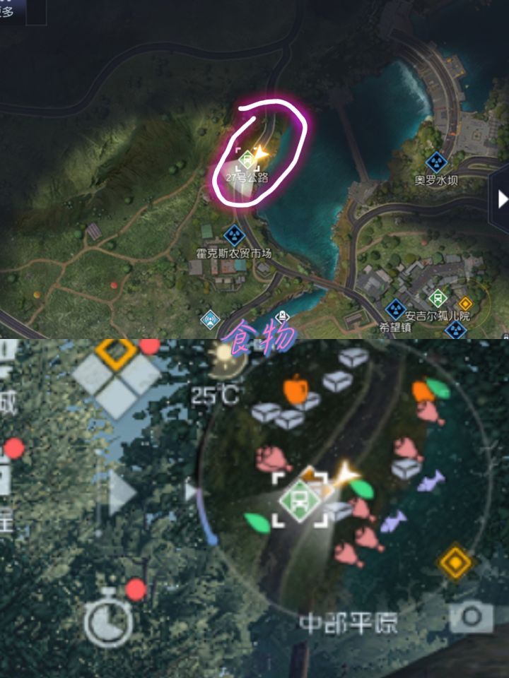 上次我们说到红木林地的资源点,今天小编就给大家带来中部平原的资源密集点,本贴适用于30-49级玩家,我们可以发现随着等级的提高,所需的资源级数也会相应增加,采集点也是不同的,话不多说,如图所示中部平原盛产二级资源(一)采集路线①西部哨所:草→资源密集区②格伦火车站:石→肉→树(二)资源密集区(玫瑰小镇)在美丽的玫瑰小镇站牌附近,可以在公路小河之间穿梭采集资源哦,资源种类丰富分布较密集,