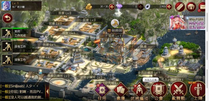 显然这次测试的内容都不是最终版本,我这么说的原因是在游戏内置的问卷调查中包含了立绘风格、建模风格、游戏类型、玩法等等信息的调查,选项透漏的信息过于广泛。显然制作人自己至今也没个特别明确的方向。下图是游戏主界面,在设置里把所有画面设置调到最高后整体清晰度有了相当显著的提升,835的手机发热量也并没有太过夸张,但是到了过场动画建模依然不太行。游戏中包含了城邦建设,非回合制的队伍作战,武将单人对抗,