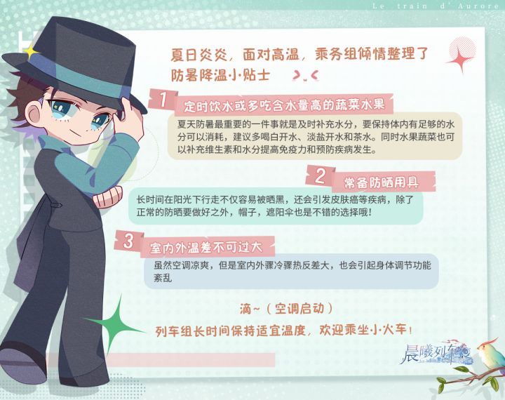 八月第一日,南方似乎有不少城市开启高温预警,虽然坐标帝都 但是乘务员们也在忍受酷热!不知道旅客们都是工作党还是学生党呢?乘务员为大家带来一份小贴士,如果是需要进行户外活动的旅客,一定要做好防晒措施,坐在办公室空调房的朋友也不要太贪凉了哦!