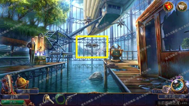 攻略组攻略优化更新,希望大家继续提意见给我们,攻略组会继续加油的!90、去工作室,左边的工作台放大后装入曲柄。摇动后得到手枪子弹,钥匙,电缆。给手枪装上子弹。然后在机库对黄框处使用手枪。链子打断后进入飞艇。将熊皮下面的电缆使用电缆替换。点击操纵台,插入钥匙并点击钥匙旋转,拉动手柄,起飞,剧情。9091、坠毁后,左侧这里黄框有玻璃片可以用来割断绳子。之后点击红框处的杆子得到后,点击多次离开船舱。