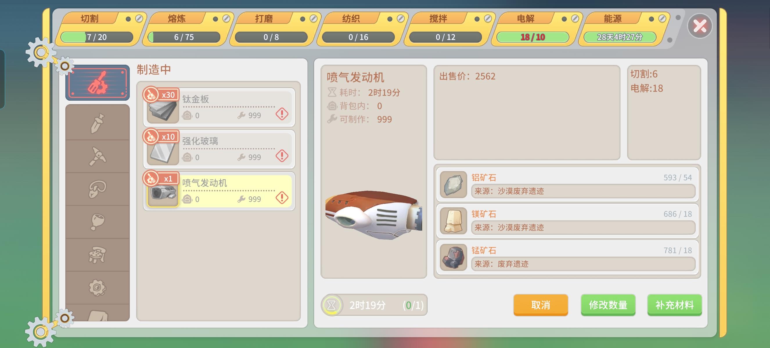 自从上次开始好几次不能直接做,不能直接就不能直接吧,我给你做出来,好家伙,你现在直接给我没有!!!我做了那么多时间的铝合金板说没就没!!!你认真的吗?做完之后消耗掉的材料也不会返还!!!直接一切凭空消失???