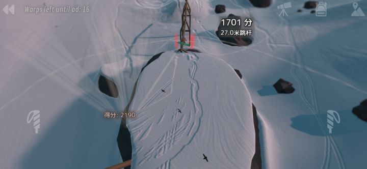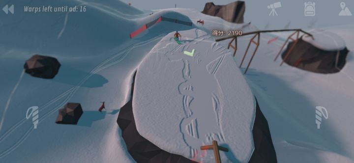 区别于传统的直接操作角色进行移动,例如上下左右的操作方法,游戏采用了两个操作杆让玩家自由发挥的操作方式,沉浸感更强,难度增加的同时玩家对角色的控制能力也得到了不小提升,操纵滑雪杆加速,腾越,翻动做出高难度动作的成就感倍增