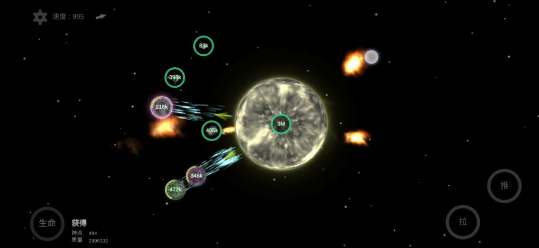 1.刚开始撞岩石,质量撞够1万(好像是这个数)会提示你升级。然后回到主页点星球,进入星球界面再点一下那堆石头,右下角放大镜点一下就进入升级界面了。以后星系里的星球都是这个地方升级。2.第一次转化之后是恒星。转化完之后就不要再苦哈哈的吸石头了。我到后期才发现这游戏一个设定是质量大的恒星会吸质量小的恒星的命。在地图上找到其他恒星之后,点一下左下角的生命会显示双方的生命,如果你的生命略高于对方,就可以