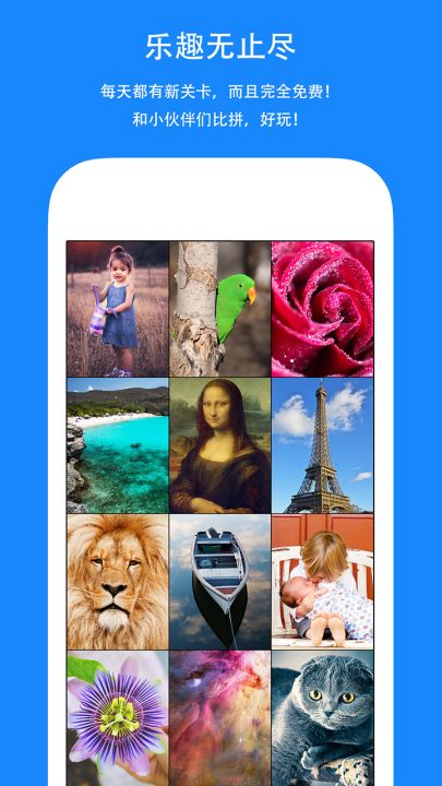 「全民拼图」保留经典的拼图玩法,但分散的图块全部呈现在屏幕内,解决了传统拼图不适合手机操作的痛点。